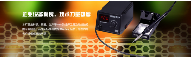 主要產(chǎn)品有可調(diào)恒溫?zé)崛勰z槍、長(zhǎng)壽電烙鐵、電動(dòng)吸錫槍、可調(diào)恒溫電烙鐵、電熱吸錫器、外熱式陶瓷發(fā)熱芯電烙鐵、雙功率電烙鐵、速熱恒溫電烙鐵、定溫電烙鐵、熱風(fēng)拆焊臺(tái)、熔錫爐、烙鐵座、錫絲座、IC起拔器、大功率電烙鐵、低壓電烙鐵等與電子電器生產(chǎn)和維修配套的電裝工具。